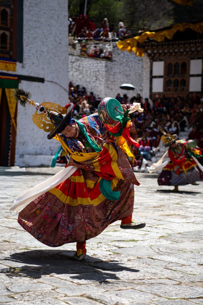 The dzong was alive with people, and performances unfolded in the courtyard as colorful dancers moved in wide, ritualistic circles.