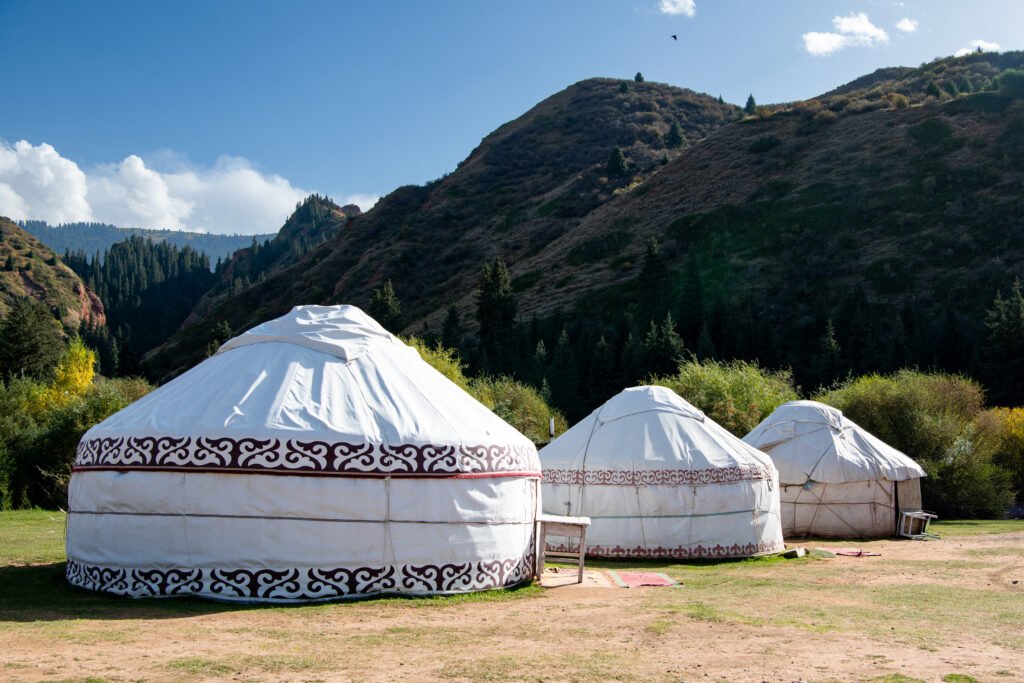 Yurts are traditional portable dwellings used by Central Asian nomadic peoples.Designed to be assembled and dismantled quickly, they reflect a way of life shaped by movement, seasonal pastures, and a deep connection to the land — a tradition that remains part of everyday life in Kyrgyzstan.